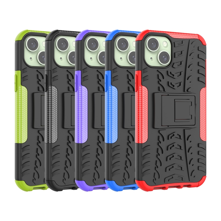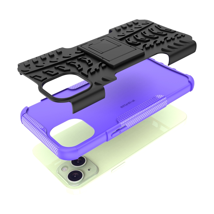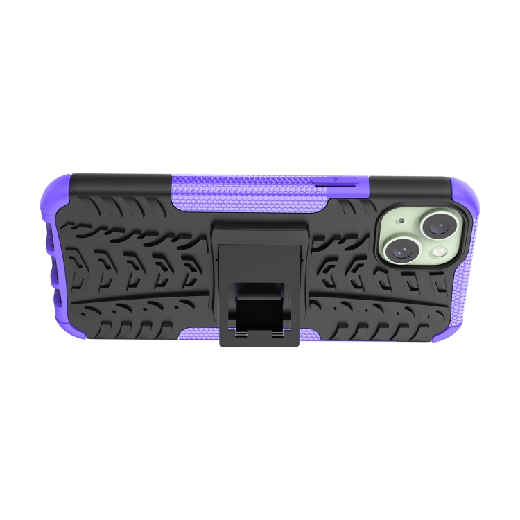 Funda para Teléfono iPhone 15 Plus TPU + PC Textura de Neumático con Soporte (Púrpura)