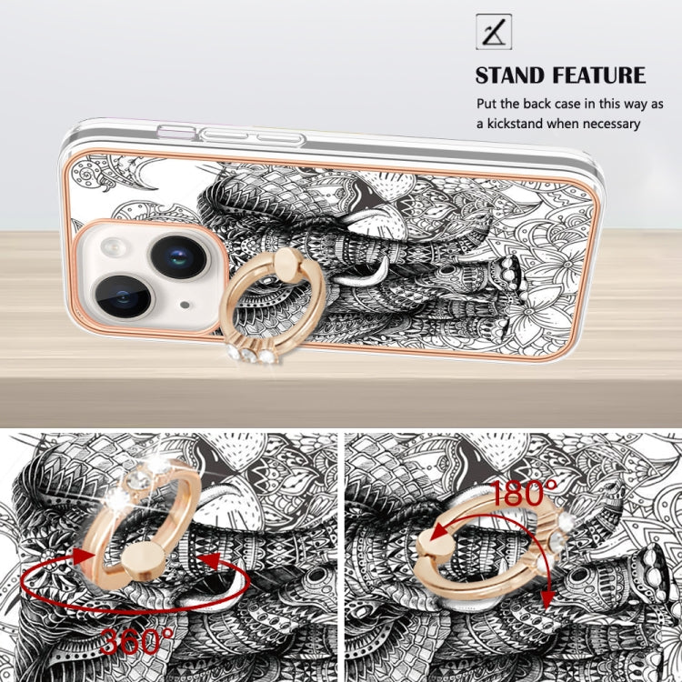 Funda para iPhone 15 Plus Galvanoplastia Imd Doble Cara con Soporte para Anillo (Totem Elephant)
