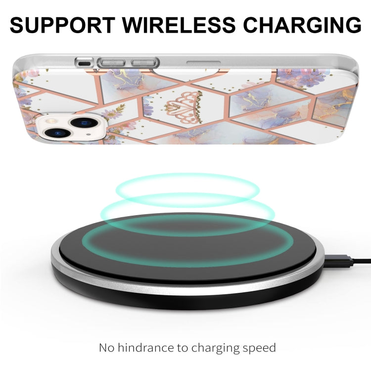 Funda para iPhone 15 Plus TPU Galvanoplastia Empalme Mármol Patrón de Flores a Prueba de Golpes (Corona)