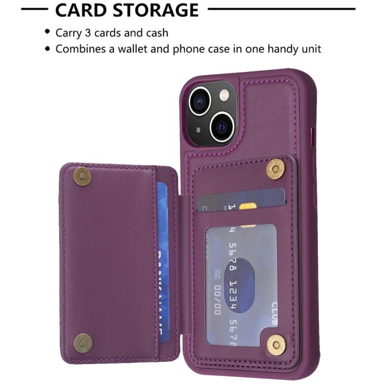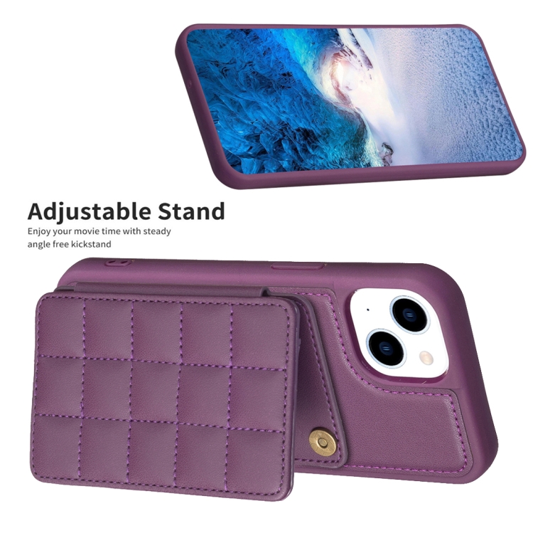 Funda para Teléfono iPhone 15 Plus Grid Card Slot Holder (Morado Oscuro)