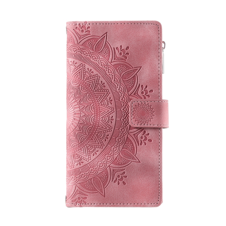 Funda de Cuero para iPhone 15 Plus Multi-Card Totem con Cremallera (Rosa)