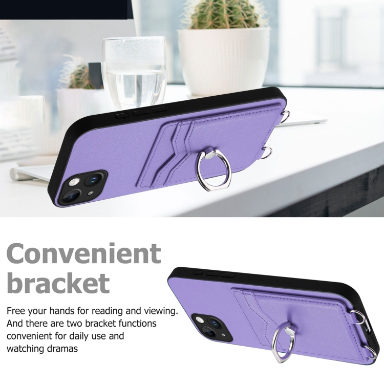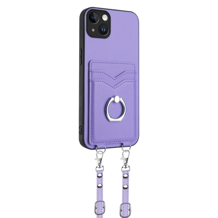Funda para Teléfono iPhone 15 Plus R20 con Soporte y Anillo de Cuerda Cruzada (Púrpura)