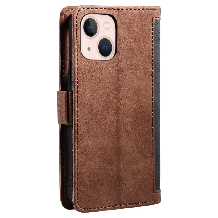 Funda para iPhone 15 Plus Retro Splicing Horizontal Flip de Cuero (Gris)