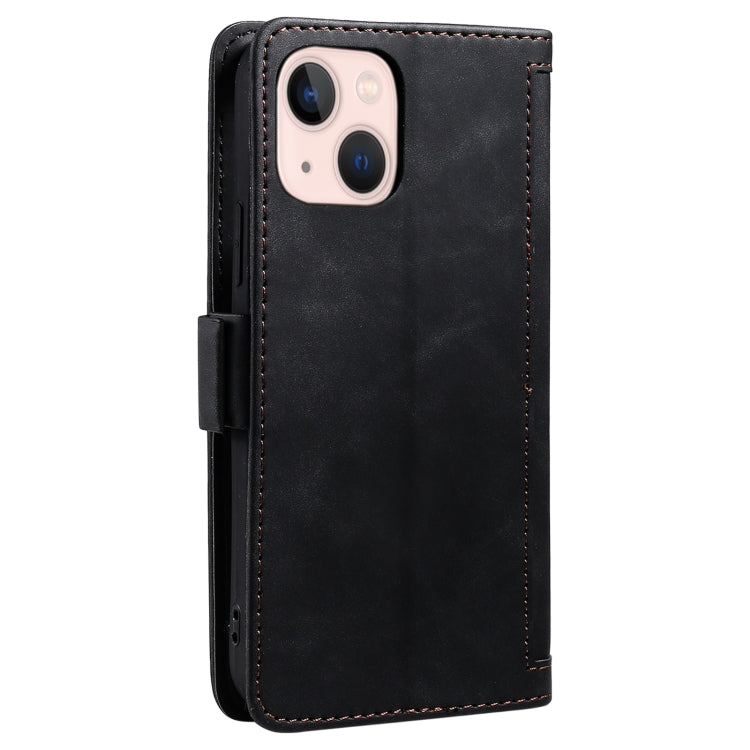Funda para iPhone 15 Plus Retro Splicing Horizontal Flip de Cuero (Negro)
