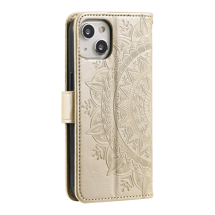 Estuche para teléfono iPhone 15 Plus Totem Flower Cuero en Relieve (Oro)