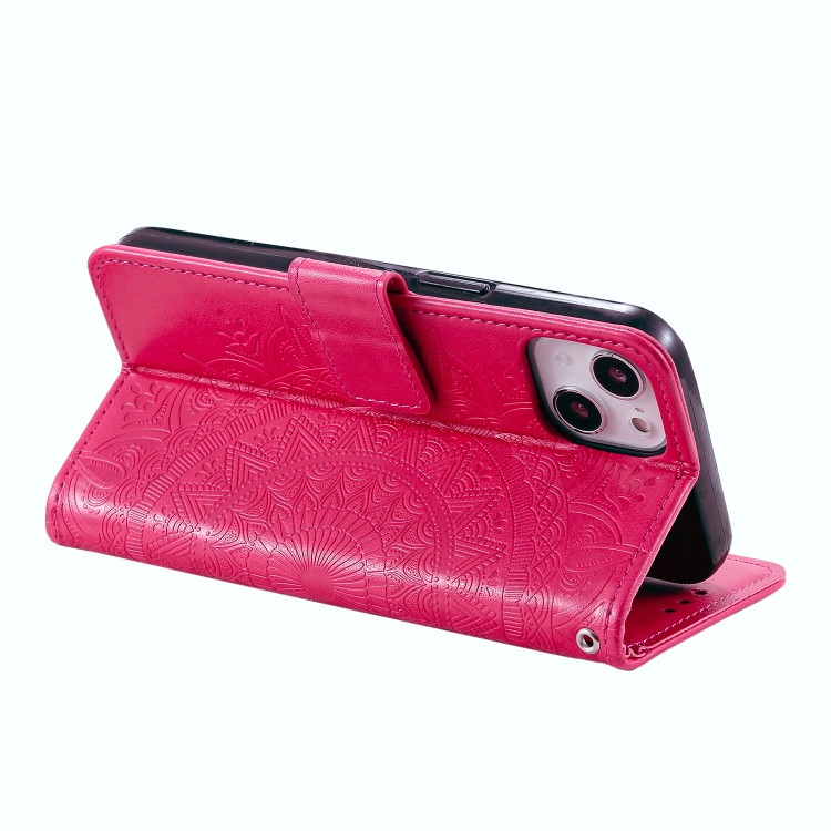 Estuche para Teléfono iPhone 15 Plus Totem Flower Cuero En Relieve (Rojo)
