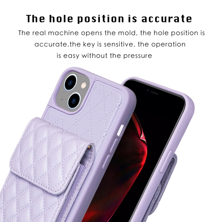 Funda para iPhone 15 Plus Vertical Wallet Rhombic Leather Phone Case (Púrpura)