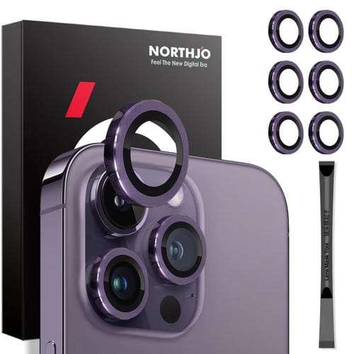 Cubierta Protectora de Lente de Cámara Northjo para iPhone 15 Pro y 15 Pro Max Anillo de Metal (Púrpura) 2 Set 6 Piezas