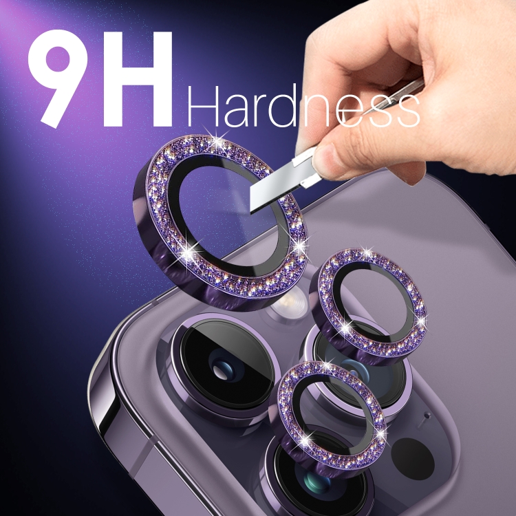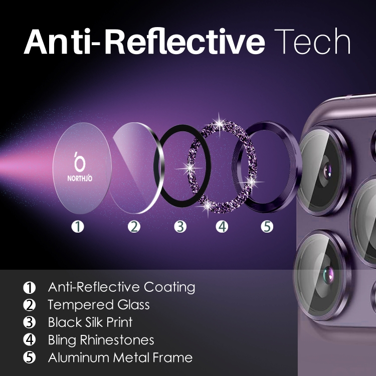 Protector de Lente de Cámara Northjo para iPhone 15 Pro y 15 Pro Max 2 Set 6 Piezas Anillo de Metal con Brillo (Púrpura)
