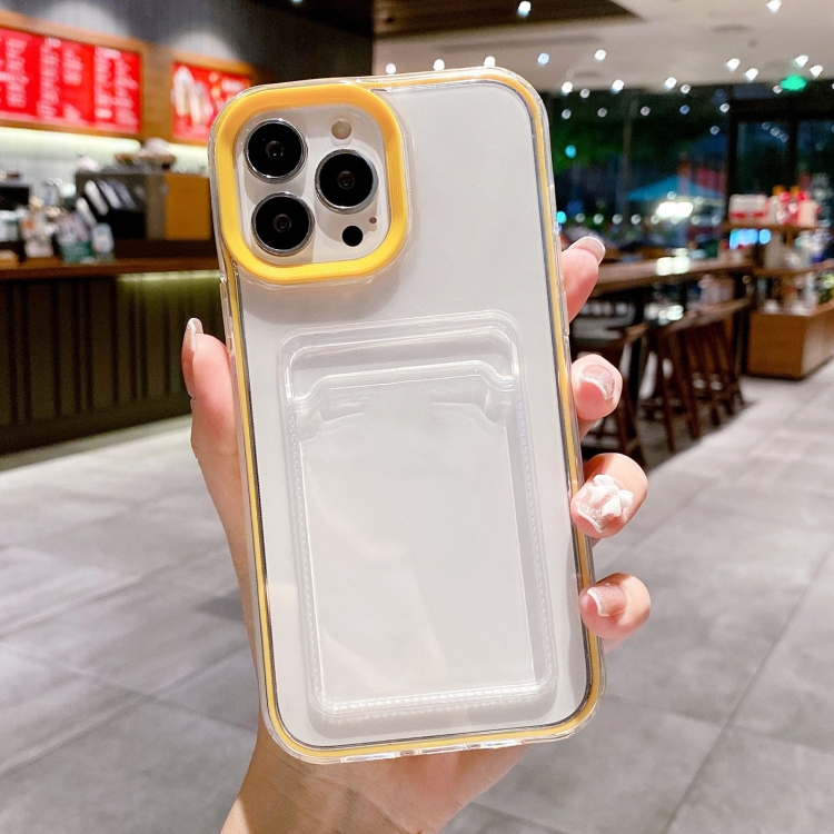 Funda para Teléfono iPhone 15 Pro 360 Clear PC Hybrid TPU con Ranura para Tarjeta (Amarillo)