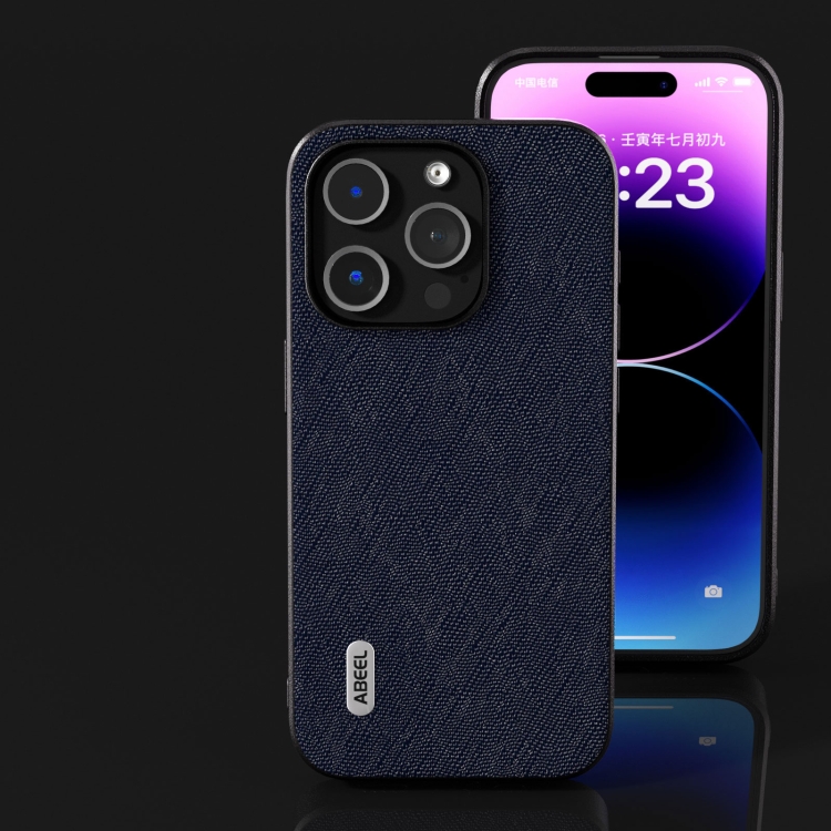Funda de teléfono Abeel para iPhone 15 Pro Cross Texture Cuero Genuino (Azul)