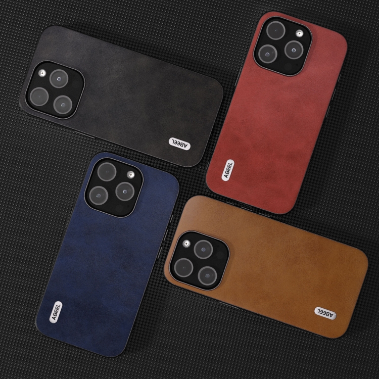Funda de teléfono Abeel para iPhone 15 Pro con textura de becerro bicolor (Rojo)
