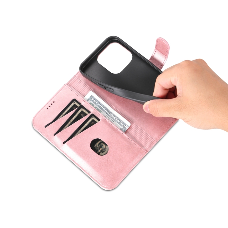 Funda para iPhone 15 Pro Azns Skin Feel Becerro Textura Cuero con Tapa (Oro Rosa)