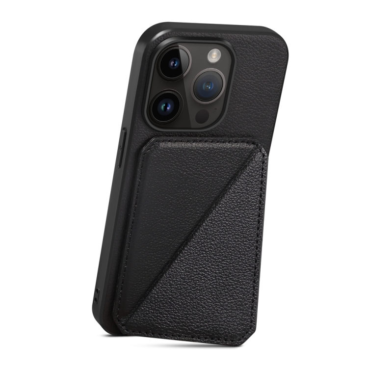 Funda para Teléfono iPhone 15 Pro D04 con Ranura para Tarjeta Dual Textura de Becerro (Negro)