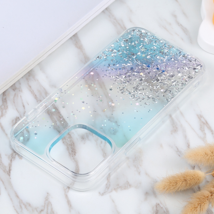 Estuche para teléfono Dfans Design iPhone 15 Pro Golden Diamond TPU + PC (Azul)