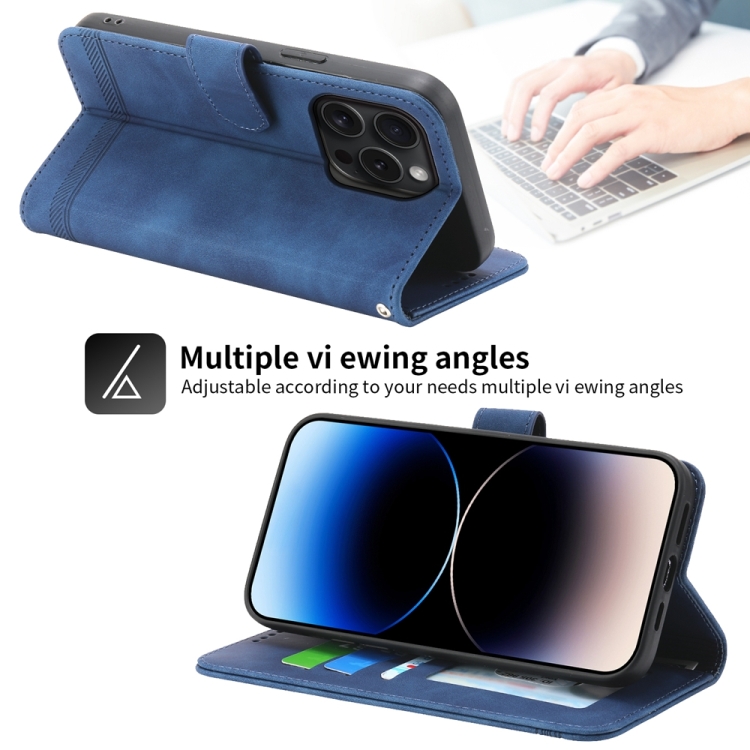 Funda para iPhone 15 Pro Dierfeng Dream Line TPU y Cuero PU (Azul)