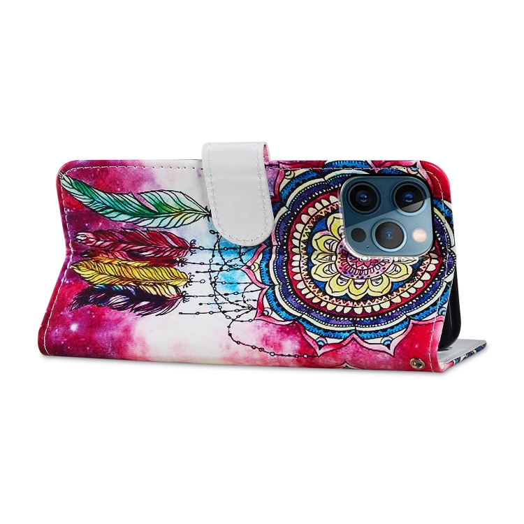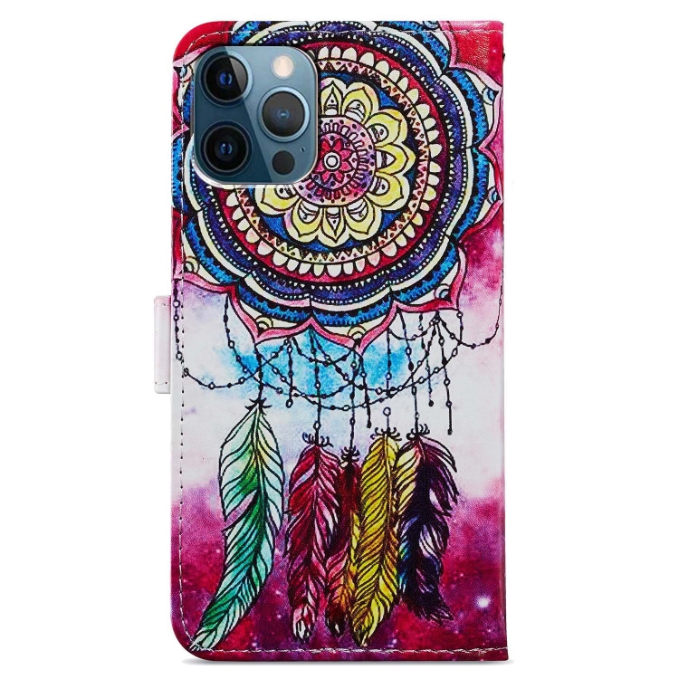 Estuche para Teléfono iPhone 15 Pro Cuero con Dibujo Coloreado Atrapasueños