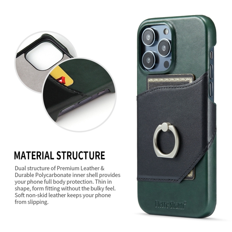 Funda para Teléfono Fierre Shann iPhone 15 Pro Oil Wax Texture con Contraportada de Cuero Genuino (Negro)