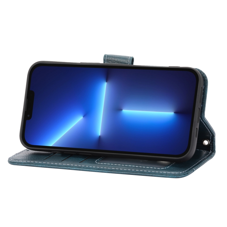 Funda para Teléfono iPhone 15 Pro Cuero con Billetera y Cremallera (Azul)