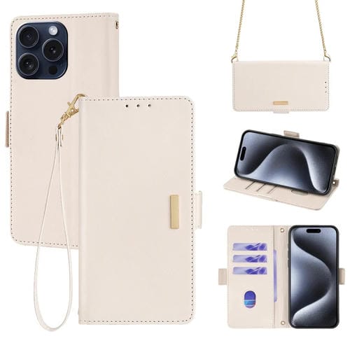 Funda para teléfono iPhone 15 Pro Cuero con Cadena Cruzada (Blanco)