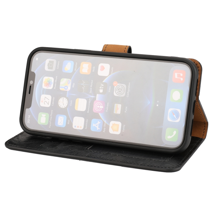 Funda para iPhone 15 Pro de PU con Tapa Horizontal Desmontable Textura Crazy Horse (Negro)