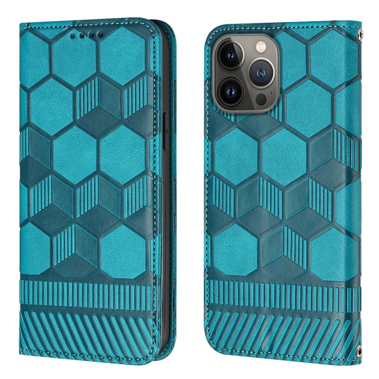 Funda de Teléfono para iPhone 15 Pro con Tapa de Cuero Magnético y Textura de Fútbol (Azul Claro)