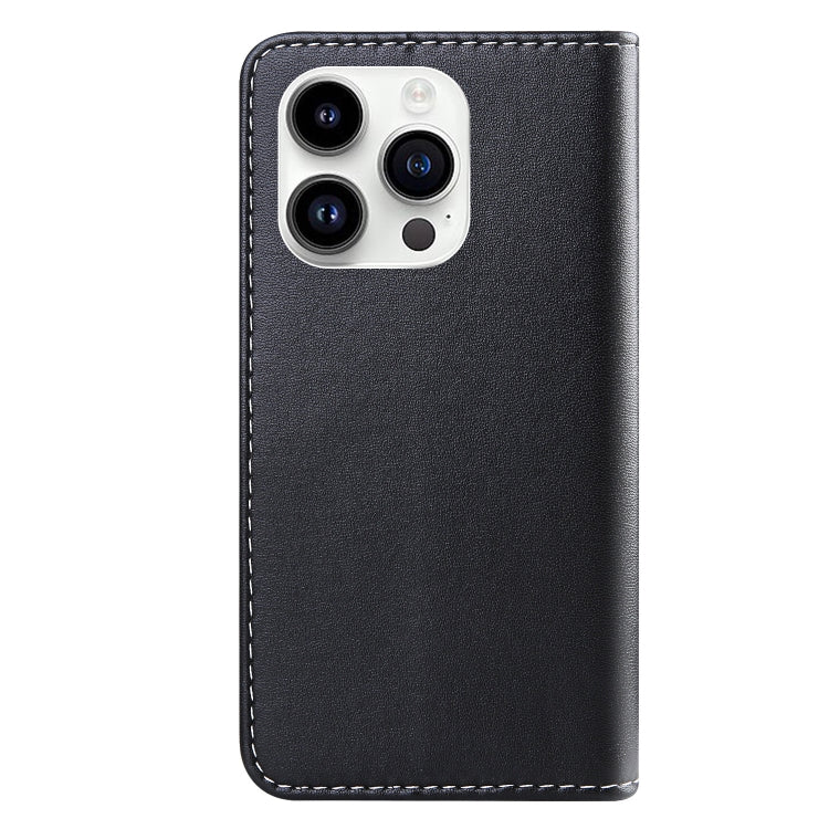 Funda de Teléfono para iPhone 15 Pro Cuero Tapa Horizontal Costuras Tricolores (Negro)