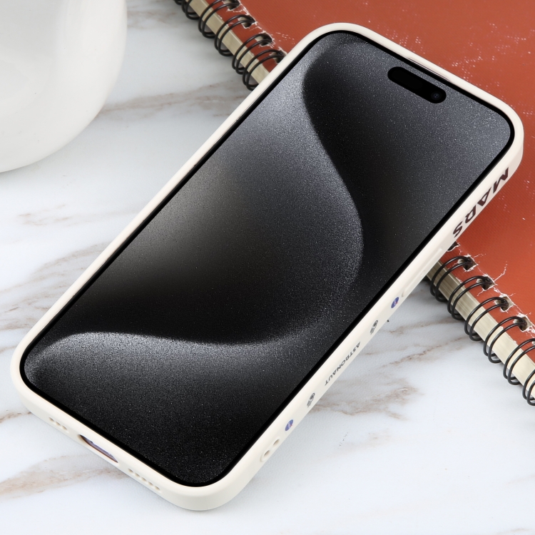 Funda para Teléfono iPhone 15 Pro Silicona Borde Recto Patrón Astronauta (Blanco)