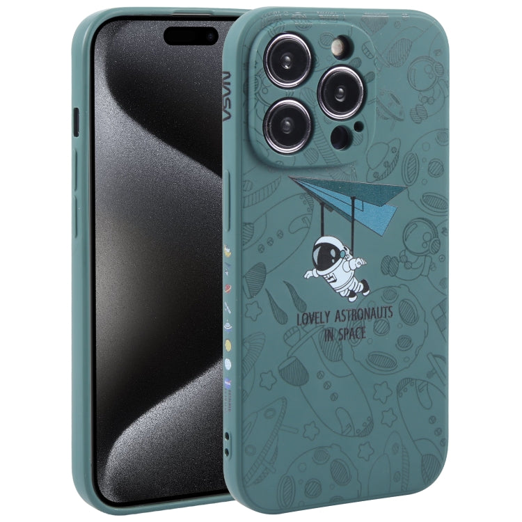 Funda para Teléfono iPhone 15 Pro Borde Recto Silicona Patrón Astronauta (Green)