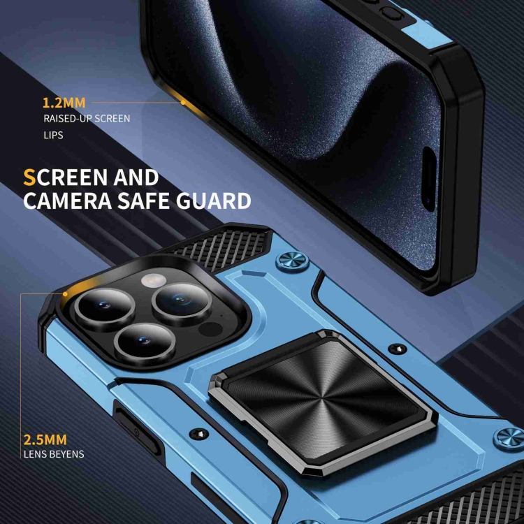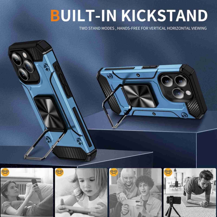 For iPhone 15 Pro Phone Case with Metal Kickstand Shockproof (Navy Blue)