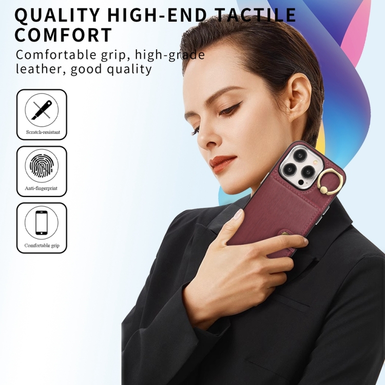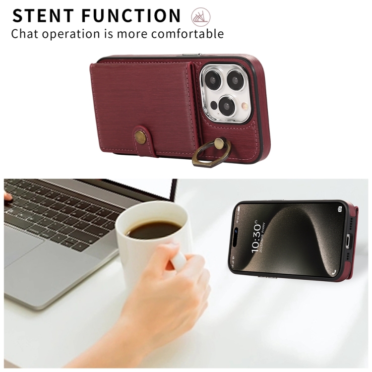 Funda para Teléfono iPhone 15 Pro con Soporte para Anillo y Billetera Textura Cepillada (Rojo Vino)