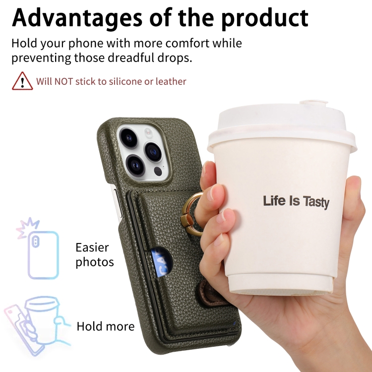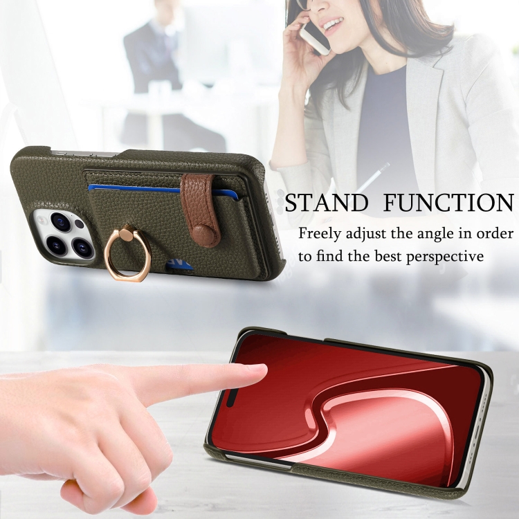 Funda para Teléfono iPhone 15 Pro Litchi Leather Oil Edge Ring Card Back (Verde)