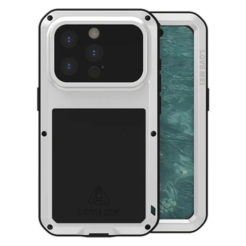 Caja de Teléfono Love Mei para iPhone 15 Pro a Prueba de Polvo Impermeable y Golpes (Plateada)