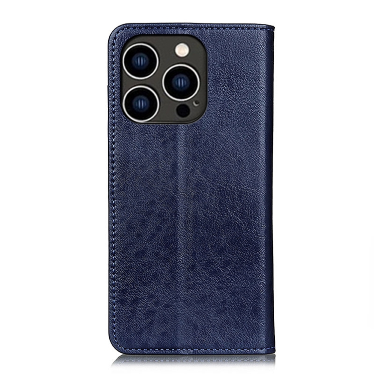 Funda de Cuero iPhone 15 Pro Magnetic Crazy Horse Texture con Tapa Horizontal (Azul)