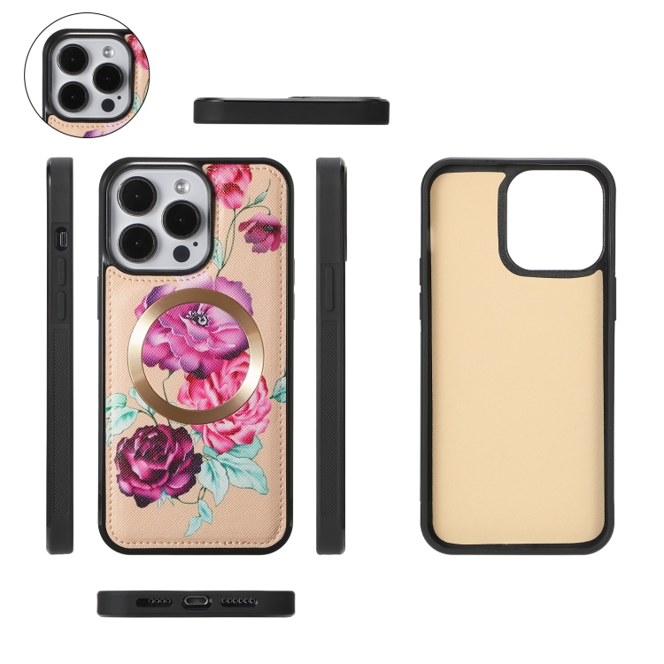 Funda para iPhone 15 Pro Magsafe Flower de Cuero con Billetera Cruzada Multifuncional con Cremallera (Amarillo)