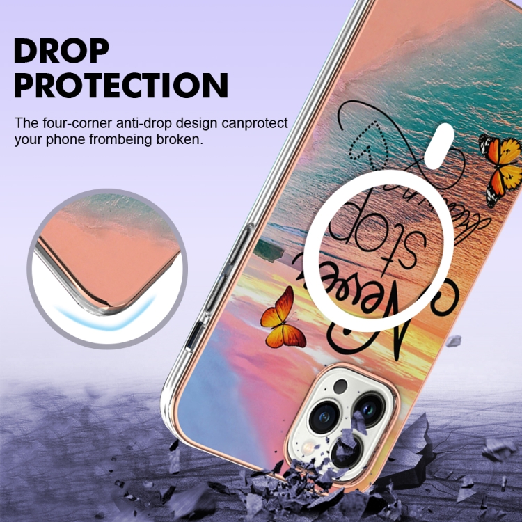 Funda de Teléfono iPhone 15 Pro Marble Pattern Imd Magsafe TPU Doble Cara (Dream Butterfly)