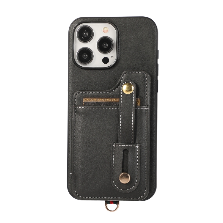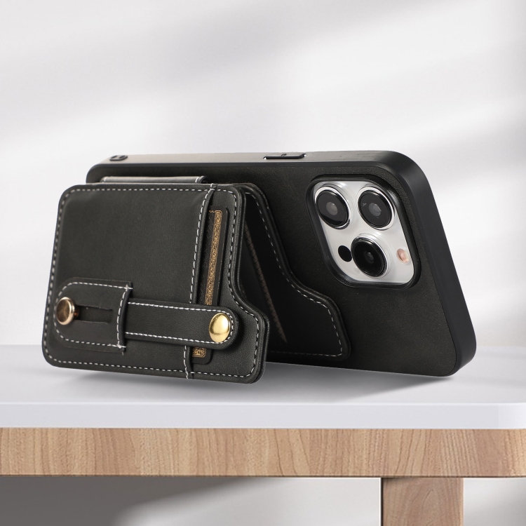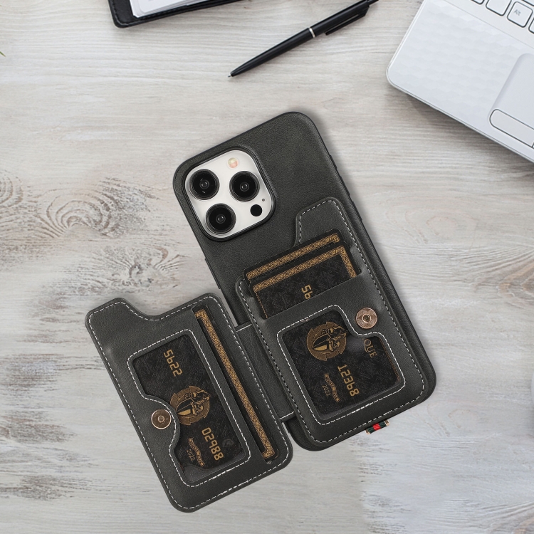 Bolsa para Tarjeta Rfid Funda para Teléfono iPhone 15 Pro Max Pu con Textura de Piel de Vaca (Negro)
