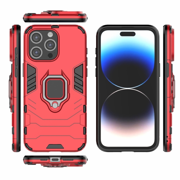 Funda para Teléfono iPhone 15 Pro Max PC + TPU a Prueba de Golpes con Soporte (Rojo)