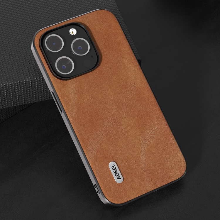 Funda para iPhone 15 Pro Max Abeel Cowhide Texture PU Phone Case (Marrón)