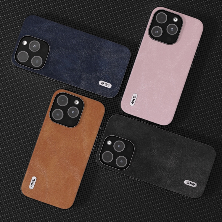 Funda de Teléfono Abeel para iPhone 15 Pro Max Pu Textura de Piel de Vaca (Rosa)
