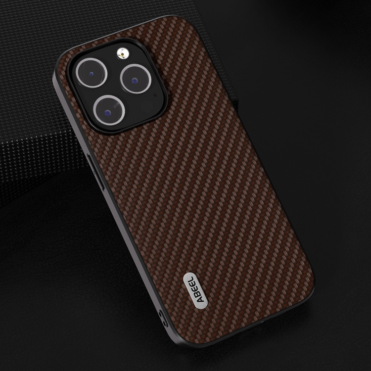 Funda Protectora Abeel para iPhone 15 Pro Max con Textura de Fibra de Carbono (Marrón Oscuro)