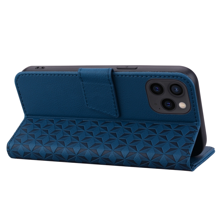 Funda para iPhone 15 Pro Max Business de Cuero con Hebilla de Diamante y Cordón (Azul Real)