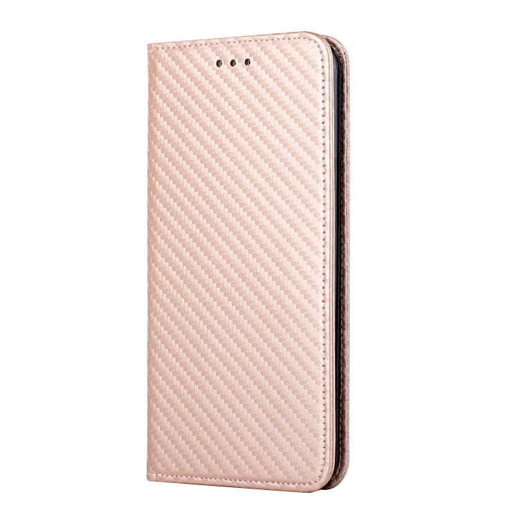 Funda para iPhone 15 Pro Max Carbon Fiber Texture Flip Holder de Cuero (Oro Rosa)