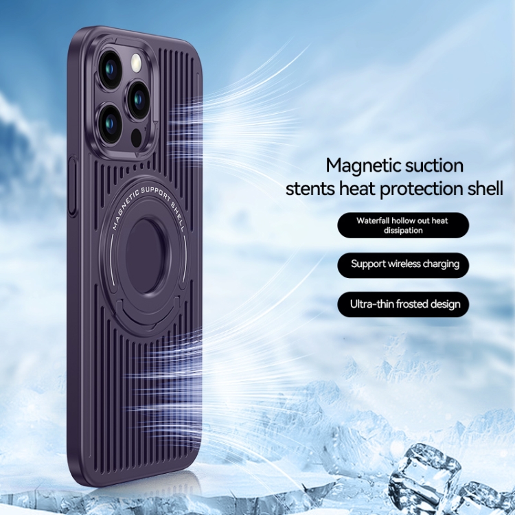 Funda para Teléfono iPhone 15 Pro Max Cooling Magsafe con Soporte de Anillo Magnético (Púrpura)