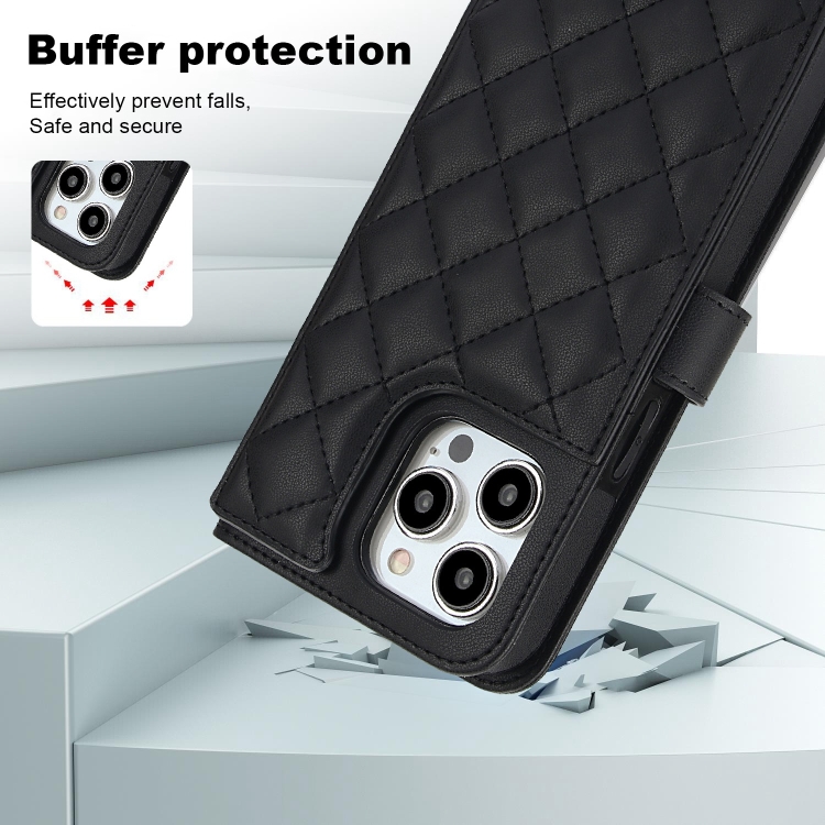 Estuche para Teléfono iPhone 15 Pro Max Crossbody Cuero Rómbico Multifunción (Negro)