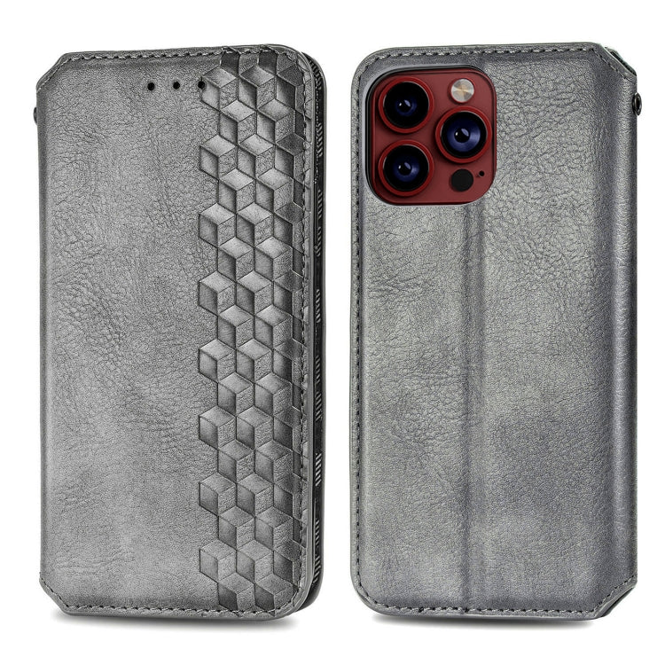 Funda para Teléfono iPhone 15 Pro Max Cubic Grid Cuero Magnético Prensado (Gris)