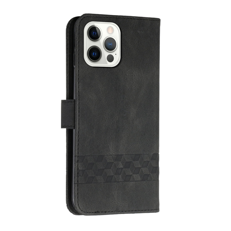 Funda de Cuero con Tapa para Teléfono iPhone 15 Pro Max Cubic Skin Feel (Negro)