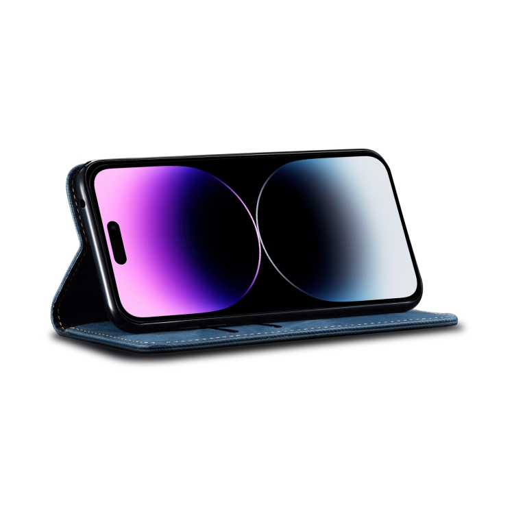 Funda para iPhone 15 Pro Max Denim Texture Casual Style Cuero con Tapa Horizontal (Azul)
