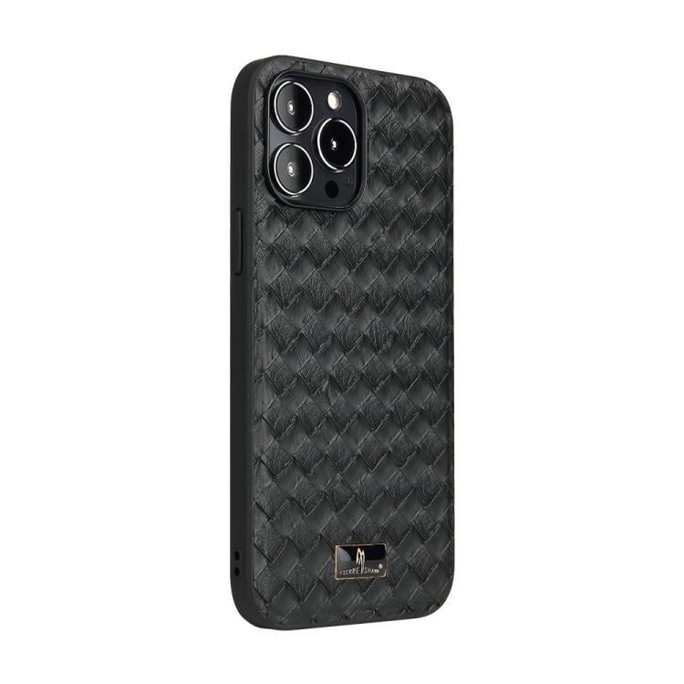 Funda para iPhone 15 Pro Max Fierre Shann Leather Texture Tapa Trasera (Negro)