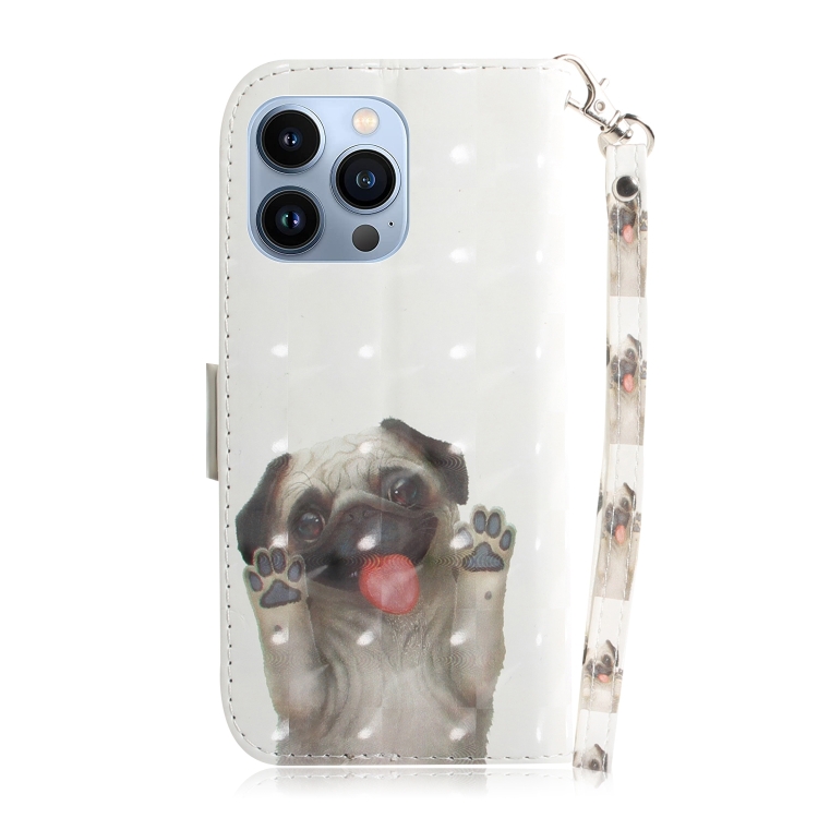 Funda de Cuero para iPhone 15 Pro Max con Tapa Horizontal Color 3D (Pug)
